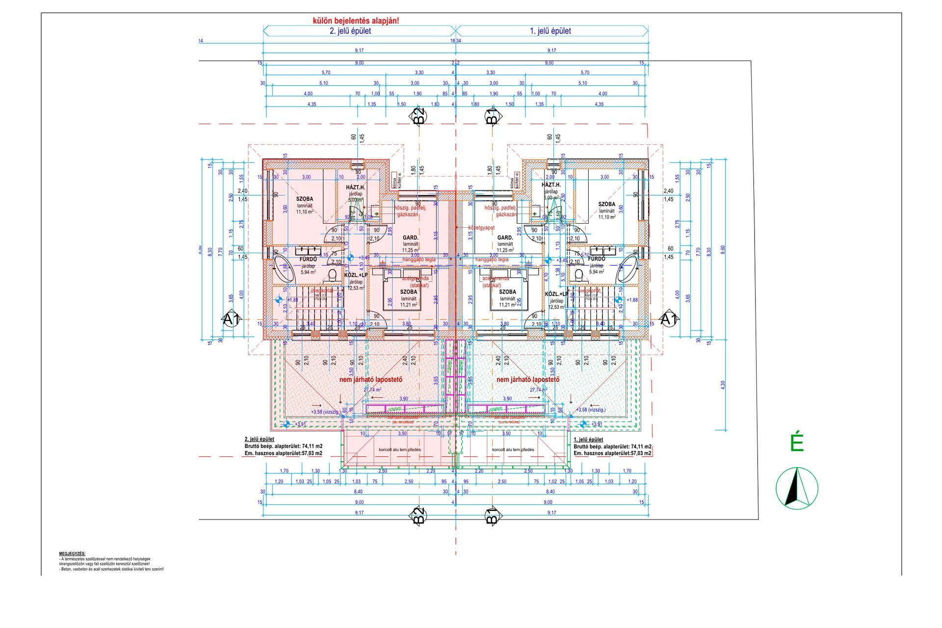 -Tégla építésű, vasbeton szerkezet
