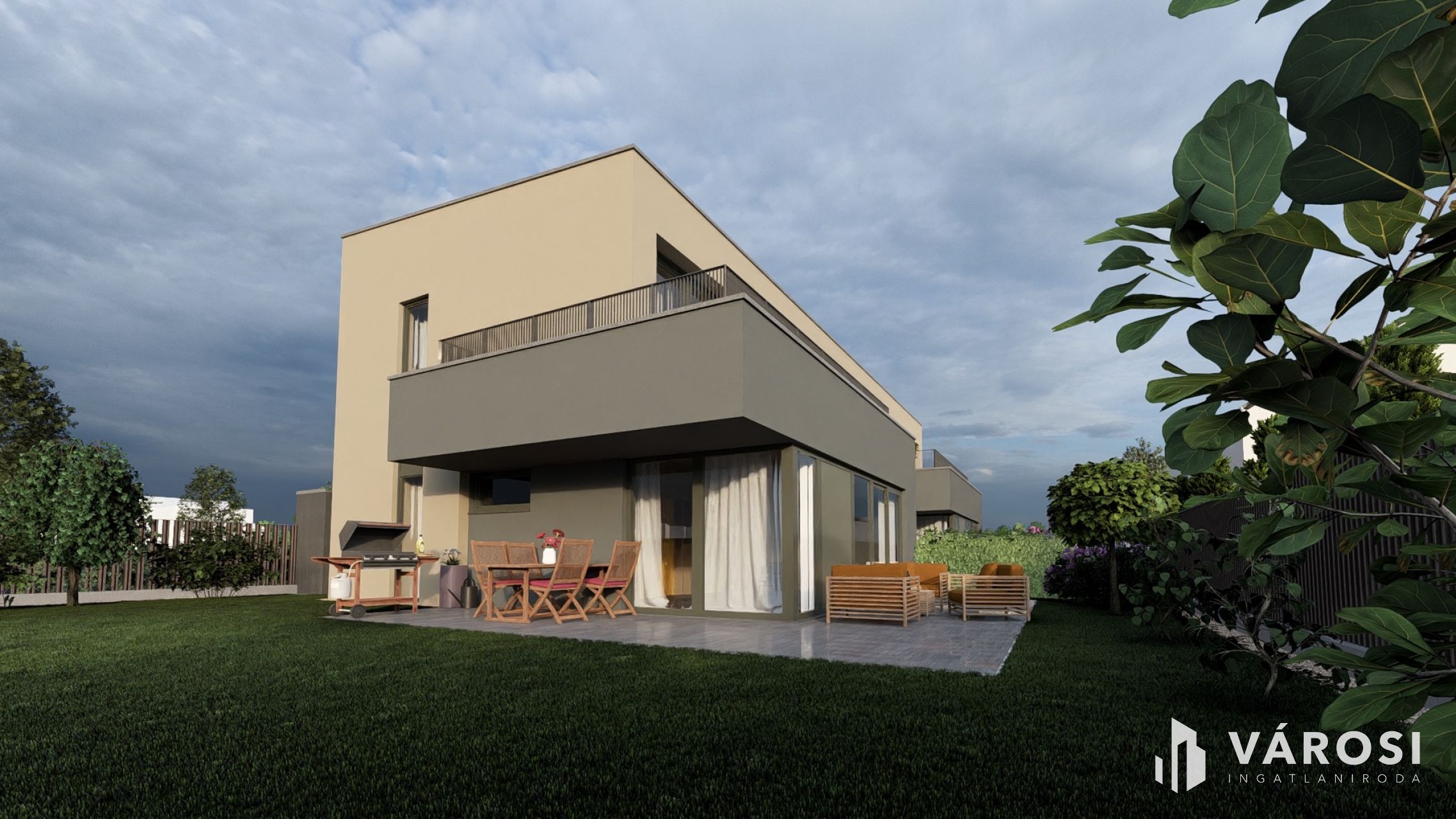 Csend, zöld környezet és modern kényelem – ezt kínálja ez a 134 m²-es, kétszintes, új építésű ikerház, melyhez 373 m²-es saját telekrész, 26 m²-es földszinti terasz és 18,64 m²-es emeleti tetőterasz tartozik.