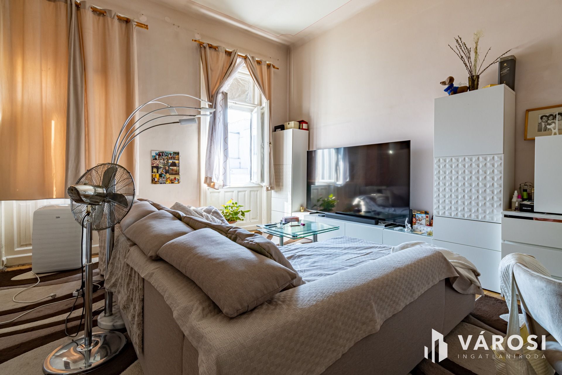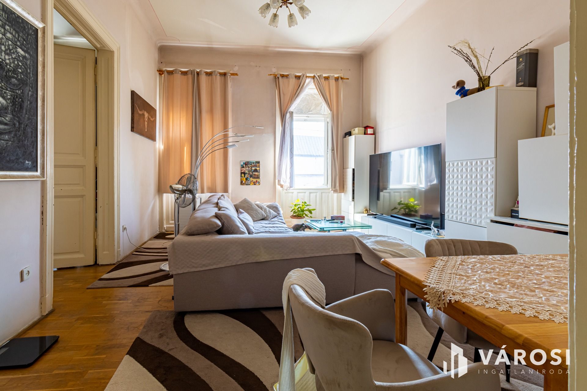 For sale in Budapest’s 8th district, on II. János Pál pápa Square,a bright, second-floor, two-room apartment, which can beconverted into a three-room layout if desired.