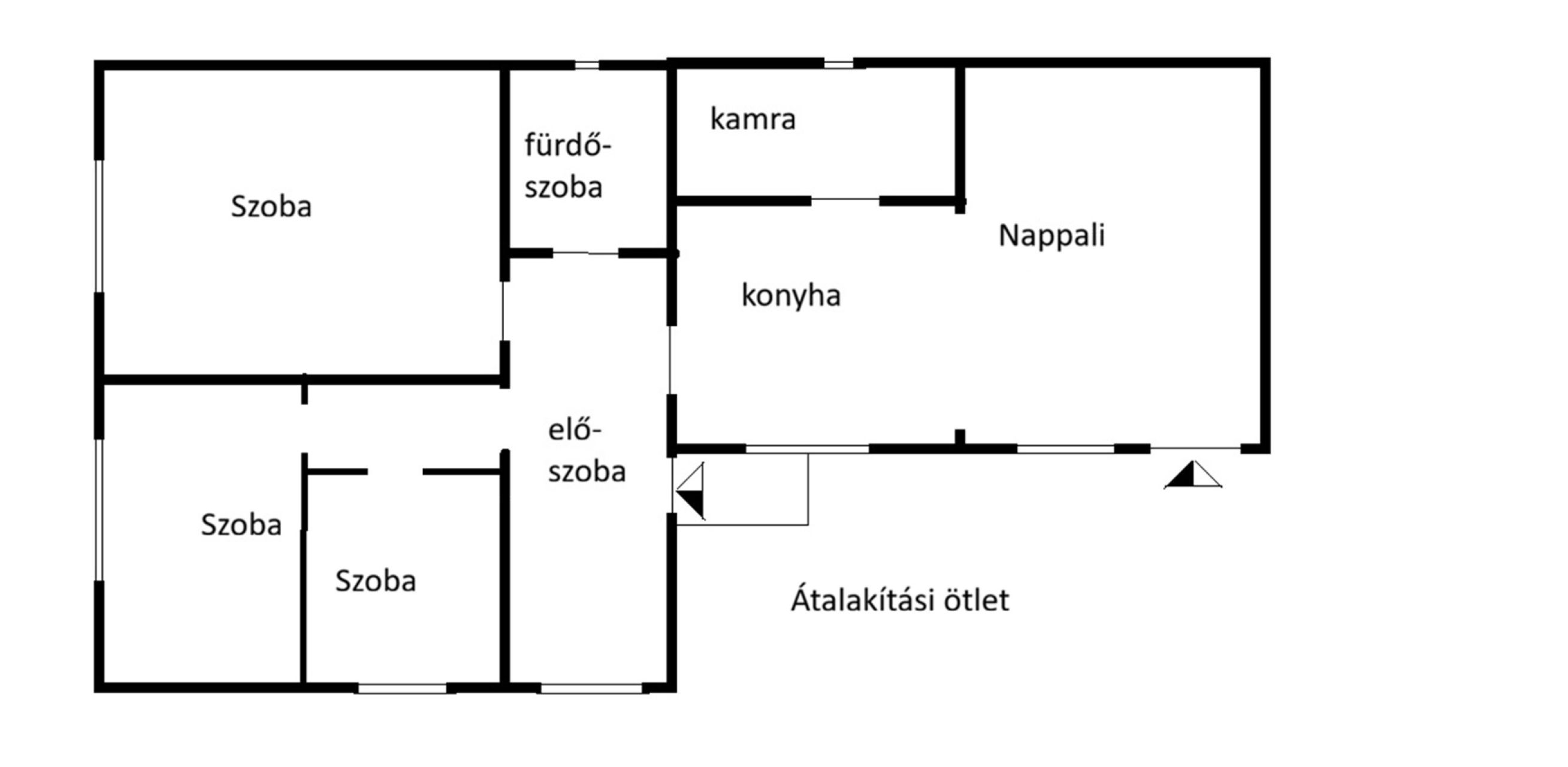 Az alaprajz átszerkesztésével egy 94 nm-es ,3 szobás, vagy az egyik szoba kétfelé választásával akár nappali+3 szoba is kialakítható. (pl. mellékelt alaprajzok szerint).