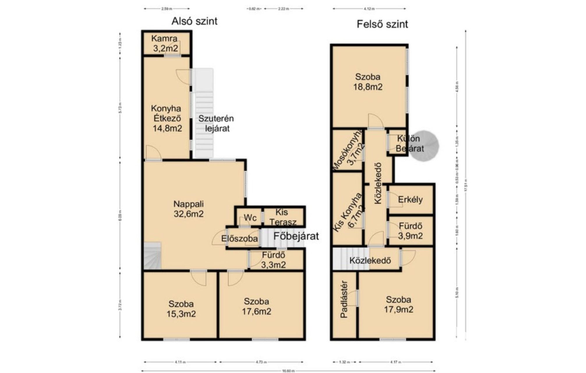 Az épület szintjei, külön bejárattal rendelkeznek, így alkalmas lehet nagyobb családok lakhatására is.