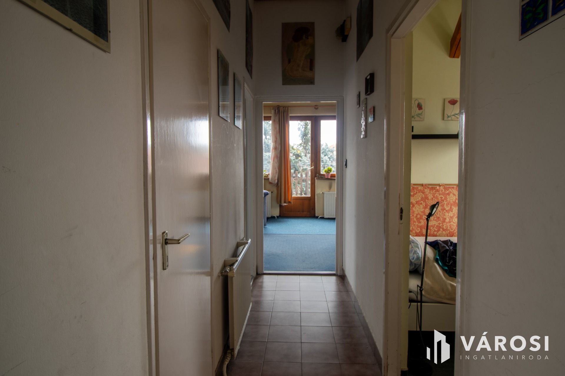 Egy teraszról visz a bejárat a közlekedőbe ahonnan külön WC, fürdőszoba, konyha kamrával, illetve három nagy (15, 17, 13 nm-es) szoba közelíthető meg.
