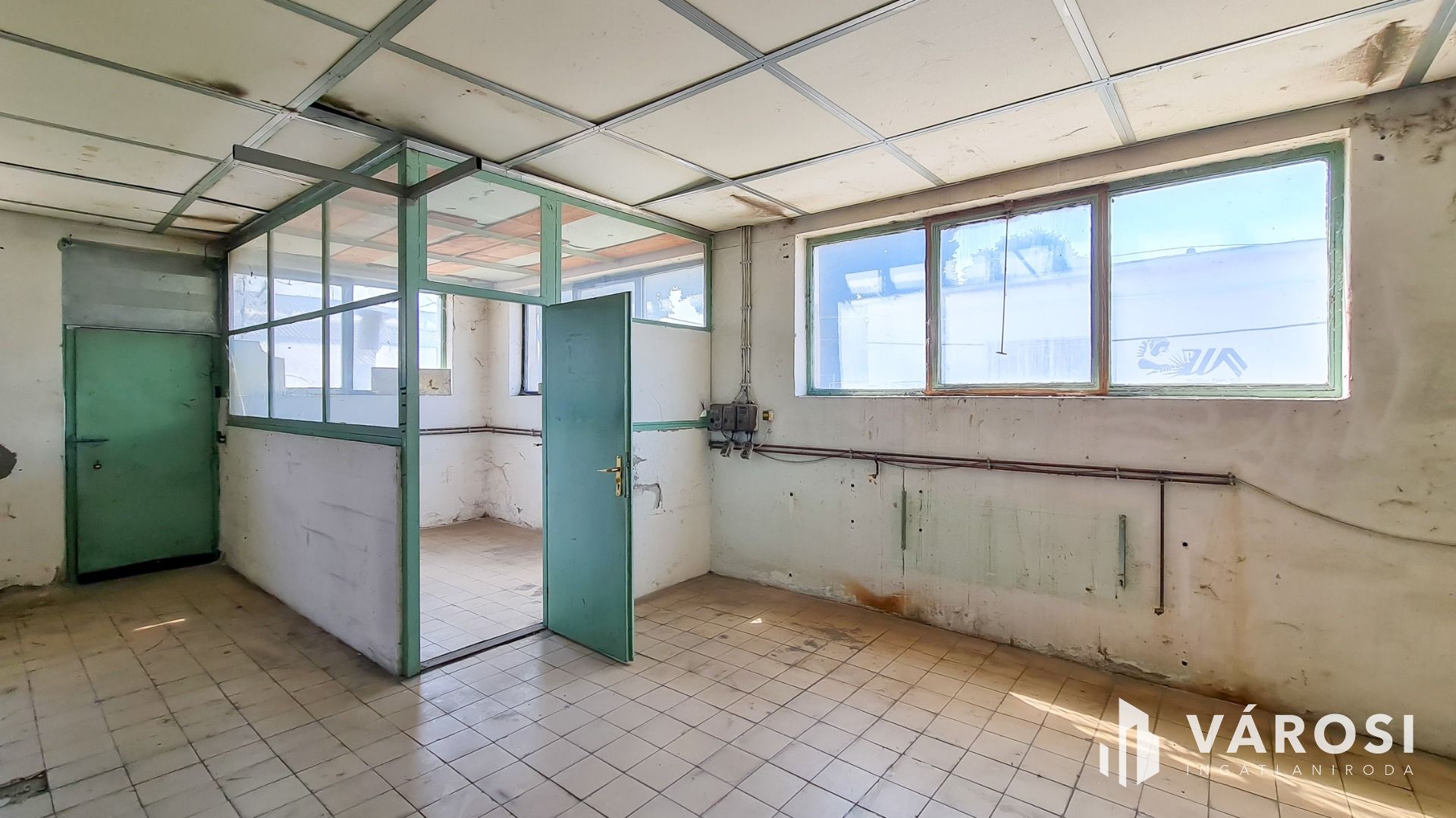 Beton és járólap burkolat épületen belül, 3X50 Amper ipari áram és vízóra van (csatorna nincsen).