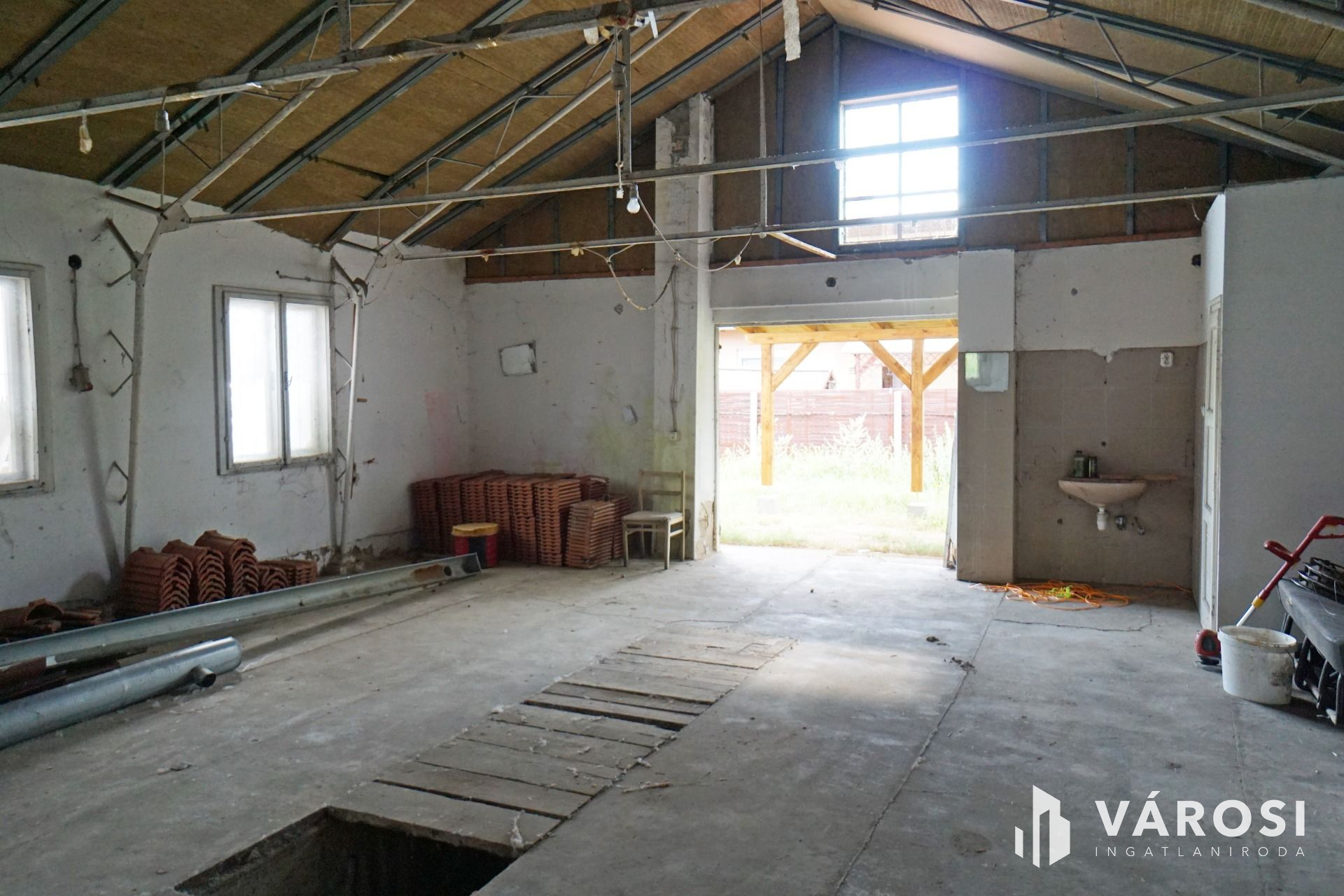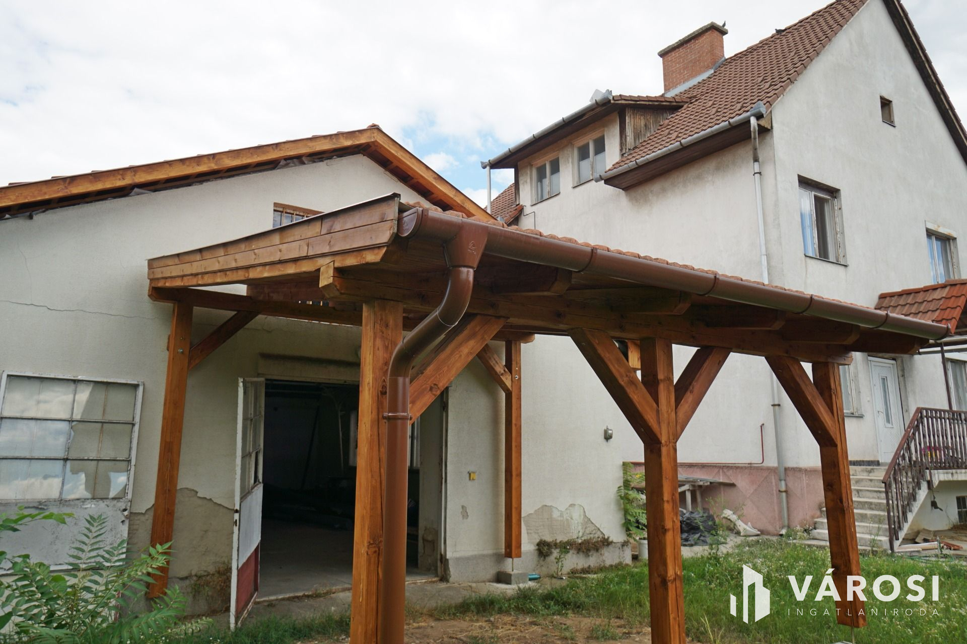 160 m2-es családi ház, 70 m2 pincével, 60 m2-es melléképülettel.