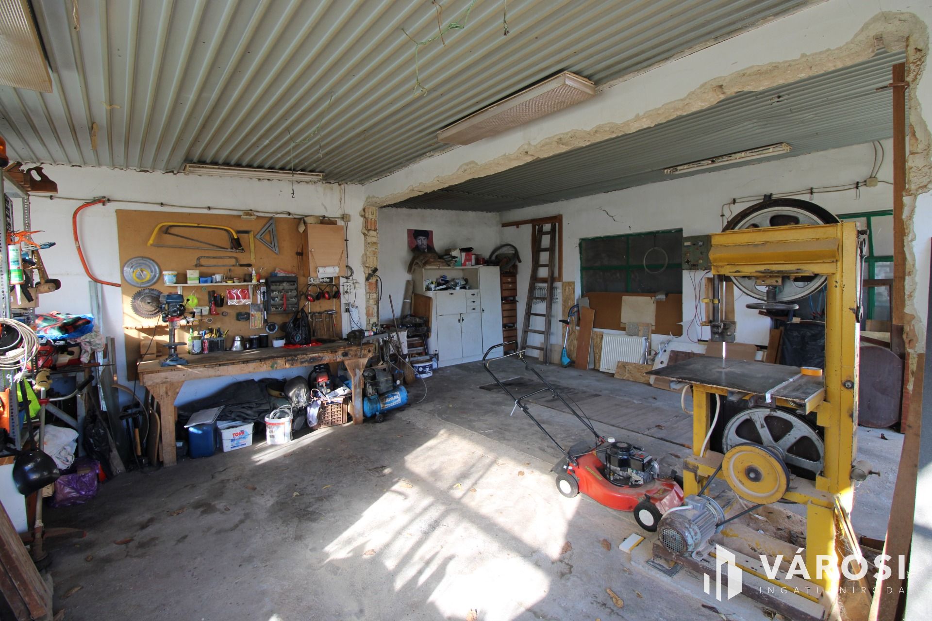 A 720 nm-es telken található egy 52 m²-es, nagy belmagasságú, téglából épült, szerelőaknás kétállásos garázs beépíthető tetőtérrel, kiépített 3 fázissal (380V) amely ideális szerviznek, műhelynek, raktárnak vagy kisebb gyártó- vagy szolgáltató tevékenységhez.