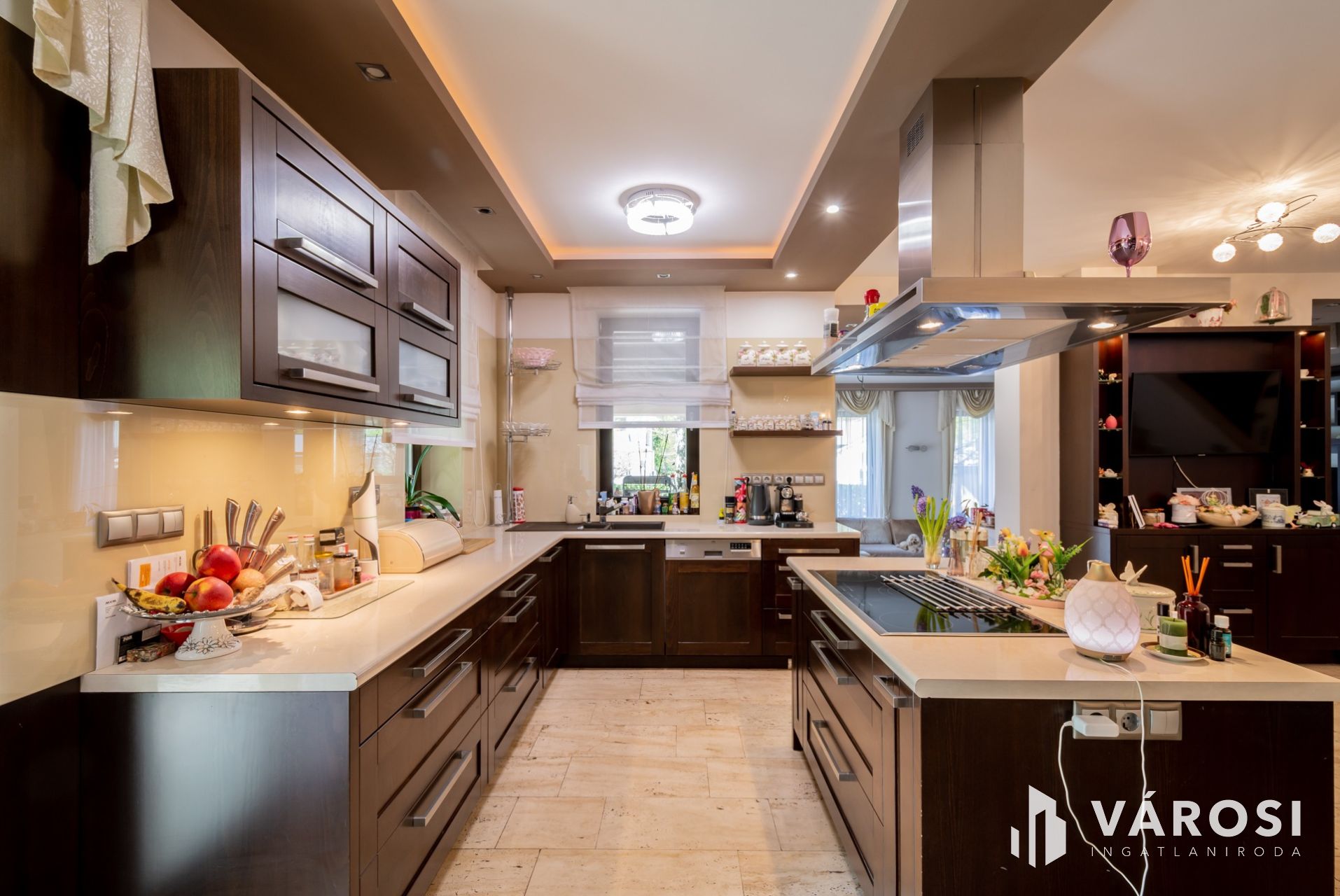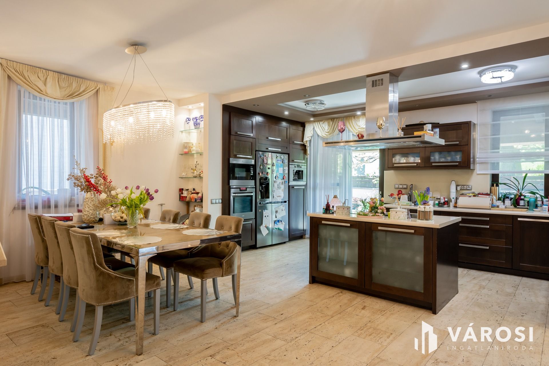 A meleg színek, természetes kő burkolatok, fa nyílászárók, kovácsoltvas elemek és egy olyan kert, amely a mindennapi stresszt azonnal feledteti. Itt nem csak egy ingatlant vesz, hanem egy privát szigetet az agglomeráció legexkluzívabb lakóparkjában.