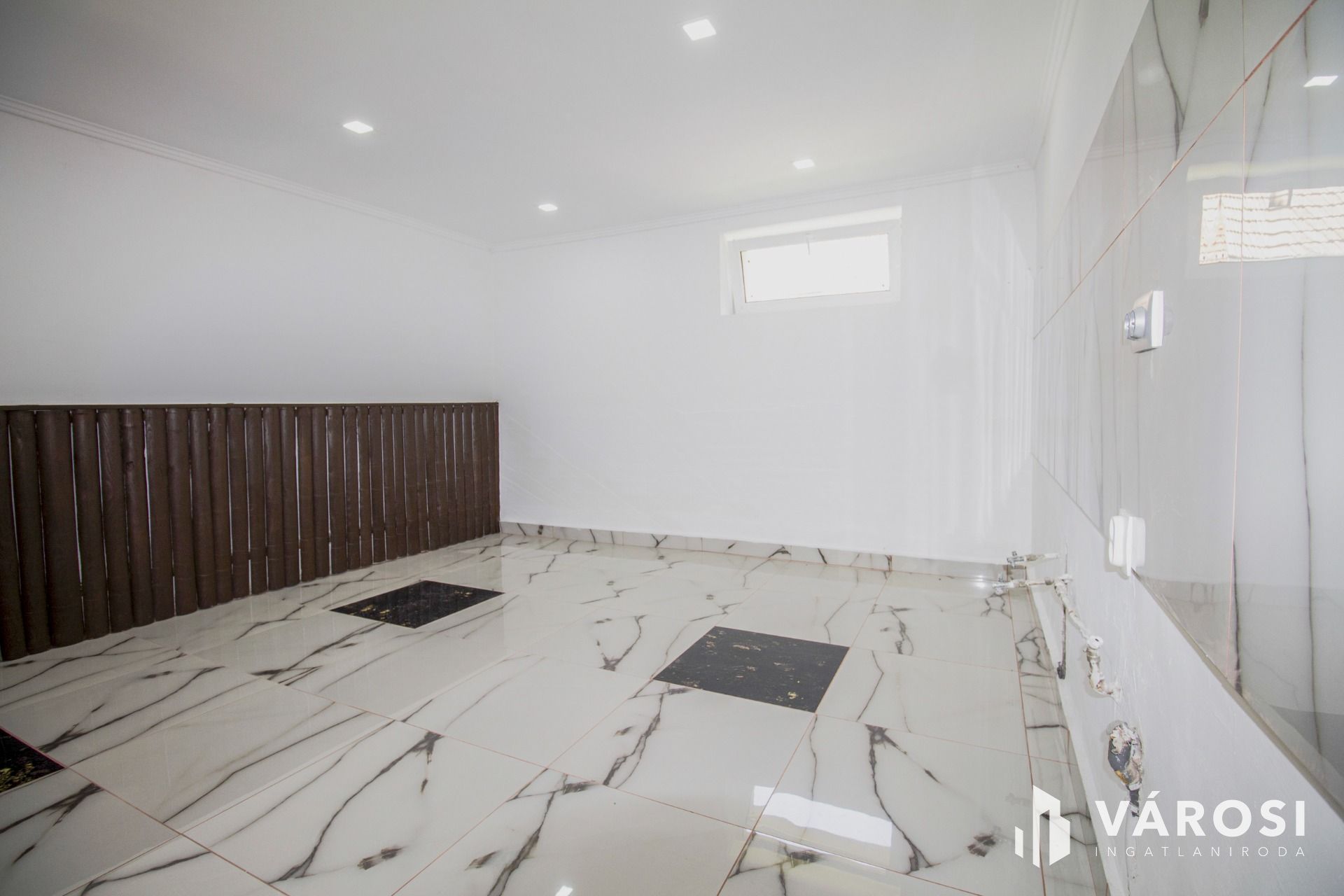A házban három hálószoba, tágas nappali, konyha-étkező, fürdőszoba és külön WC található, így tökéletes elosztású akár nagyobb család számára is. A felújítás során a szobákban elegáns, fényes tükörparketta, a közlekedőben, konyhában, fürdőben és mellékhelyiségben egységes, modern padlólapok kerültek beépítésre. A konyha és a fürdőszoba teljesen új, modern kivitelben készült.