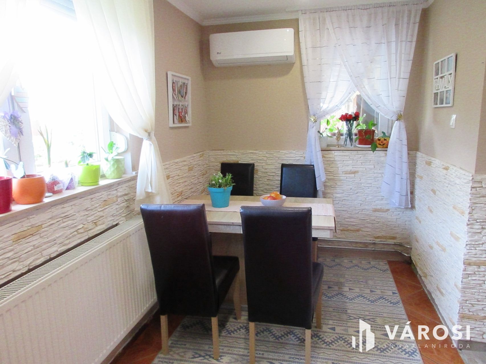Orosházán, a Szarvasi úton kínálom eladásra ezt a vegyes falazatú családi házat, melyet a teljesség igényével újítottak fel. Az összes nyílászáró hőszigetelt, a szobákban laminált parketta, minden más helységben hidegburkolat. Az áramhálózat teljesen felújítva, fí relével. A fűtése gáz cirkó kazán, radiátor hőleadókkal. A nyár melegét egy hűtő-fűtő klíma enyhíti.