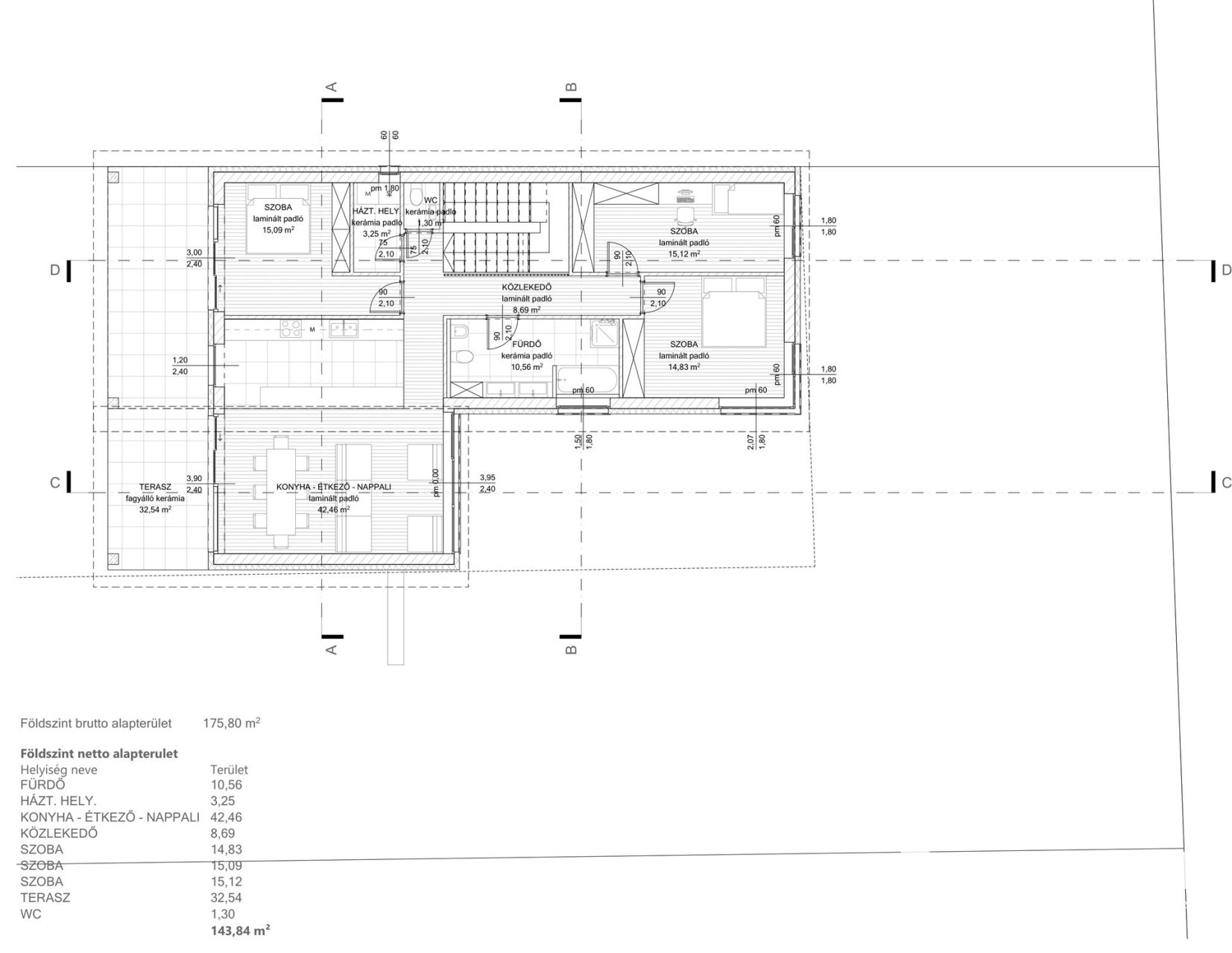 A ház egy 2275m2-es telken kerül megépítésre, beton alappal, 30-as Porotherm téglával, beton födémmel, antracit tetőcseréppel. Az épület 2 szinttel rendelkezik.