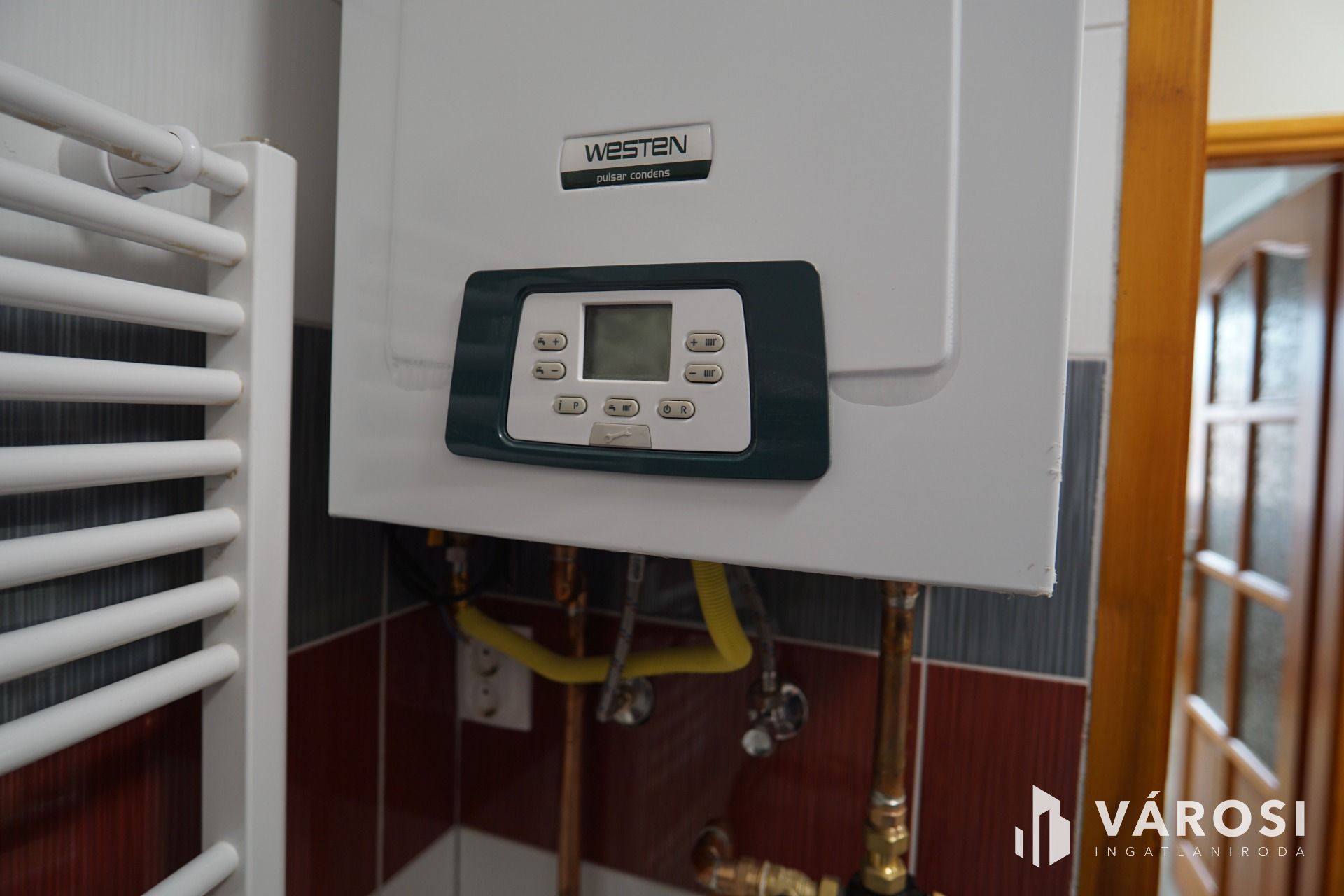 A lakás melegét egy szintén új, kondenzációs gáz cirkó kazán biztosítja, radiátorok segítségével.