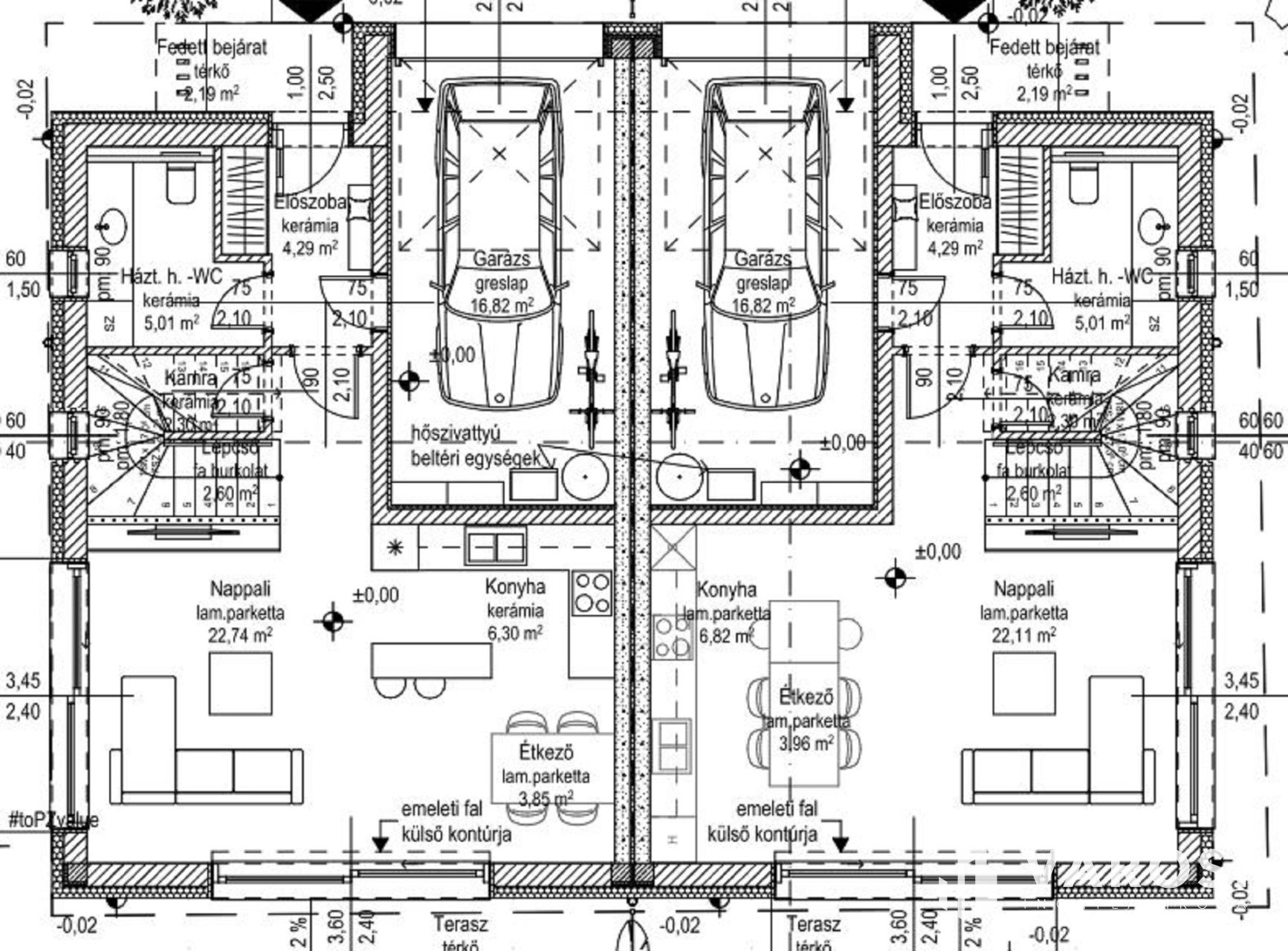 Az iker lakások teljesen különálló épületek, nincs közös faluk, így valódi családi ház érzetet biztosítanak.