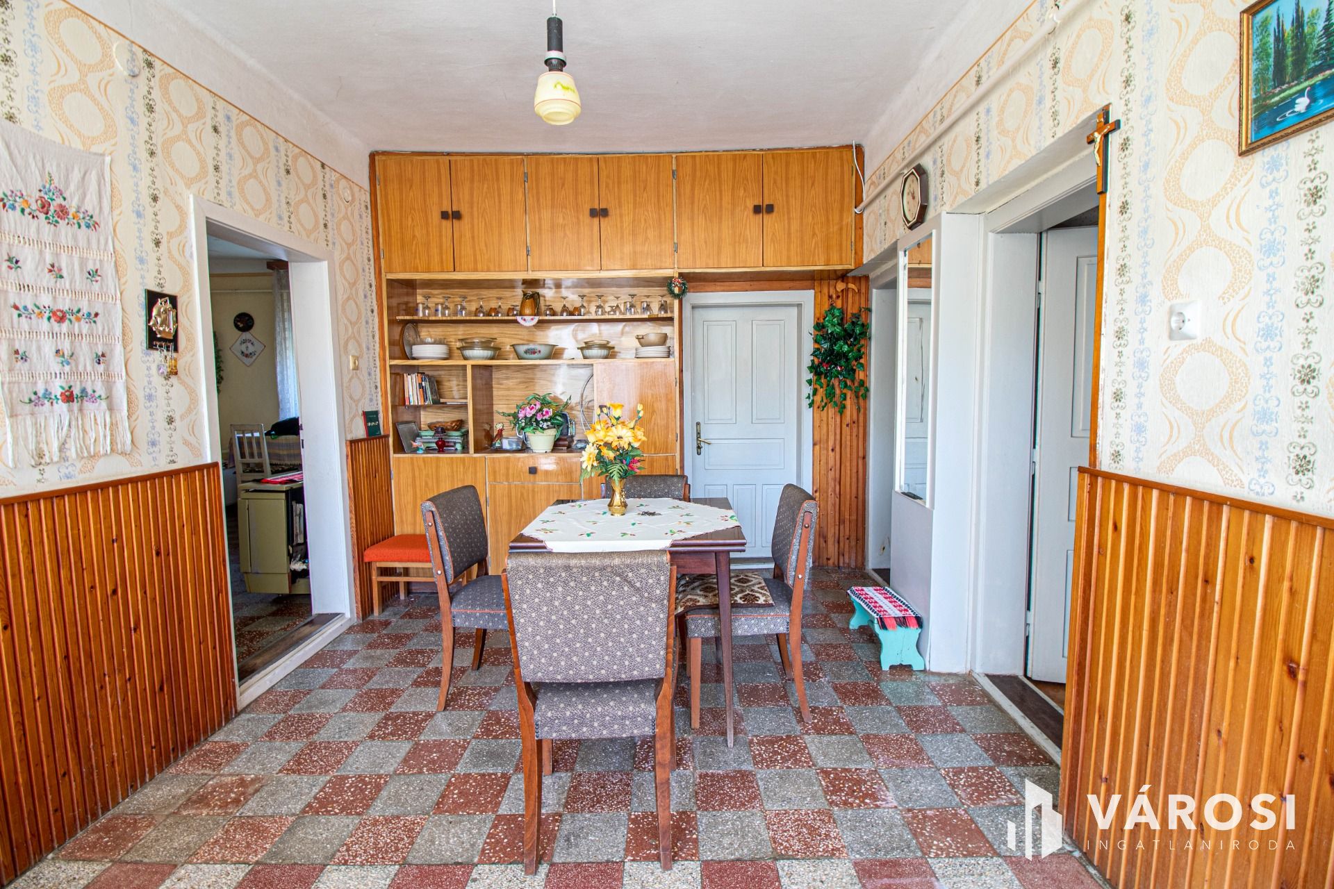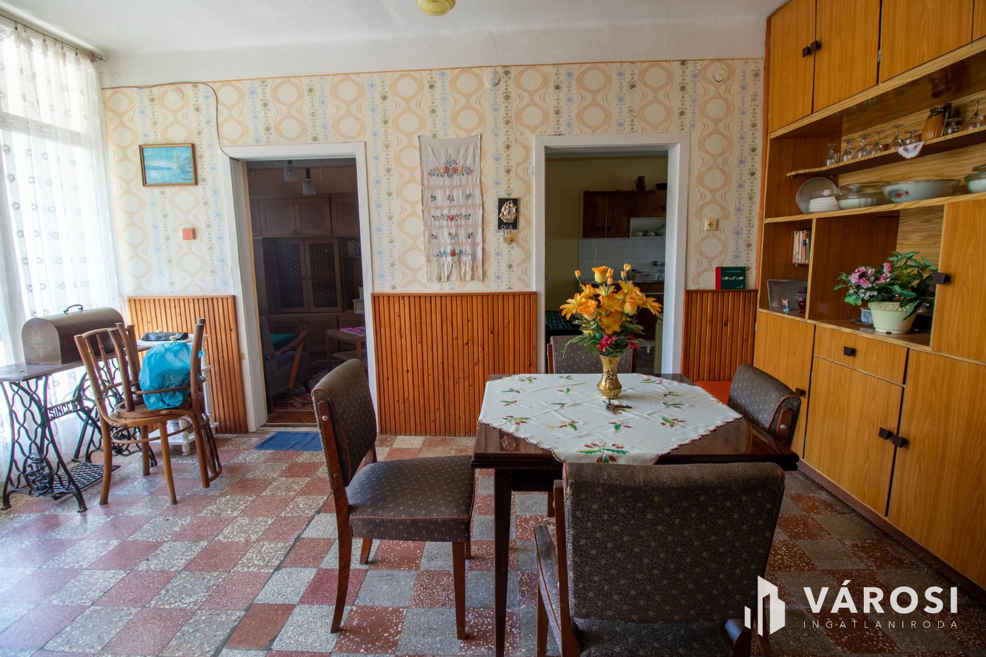 A 80 nm hasznos alapterületű ház remek statikai állapotnak örvend. Az ingatlan korszerűsítést igényel, jelentős belső felújítás nem történt, de jelen állapotában is lakható. A beton alapra épült ingatlan remek alapot képezhet egy modern, fiatalos élettér kialakításához. A tető néhány éve megújult, valamint ekkor az ingatlan kéményei is újra lettek rakva. A fűtésről konvektorok gondoskodnak. A lakótér helyiségei: 3 teljes értékű szoba, előszoba, kamra, fürdőszoba, konyha.