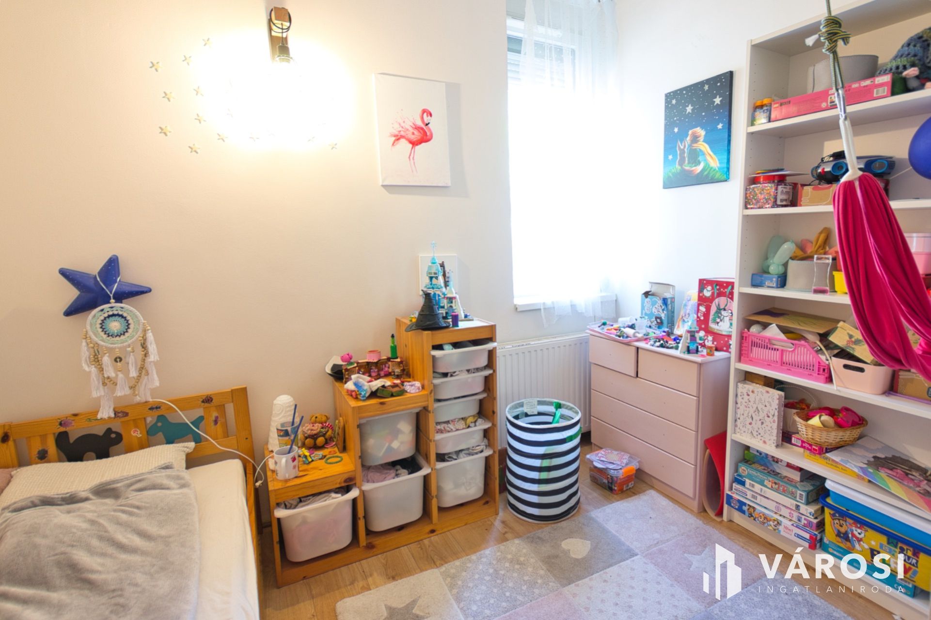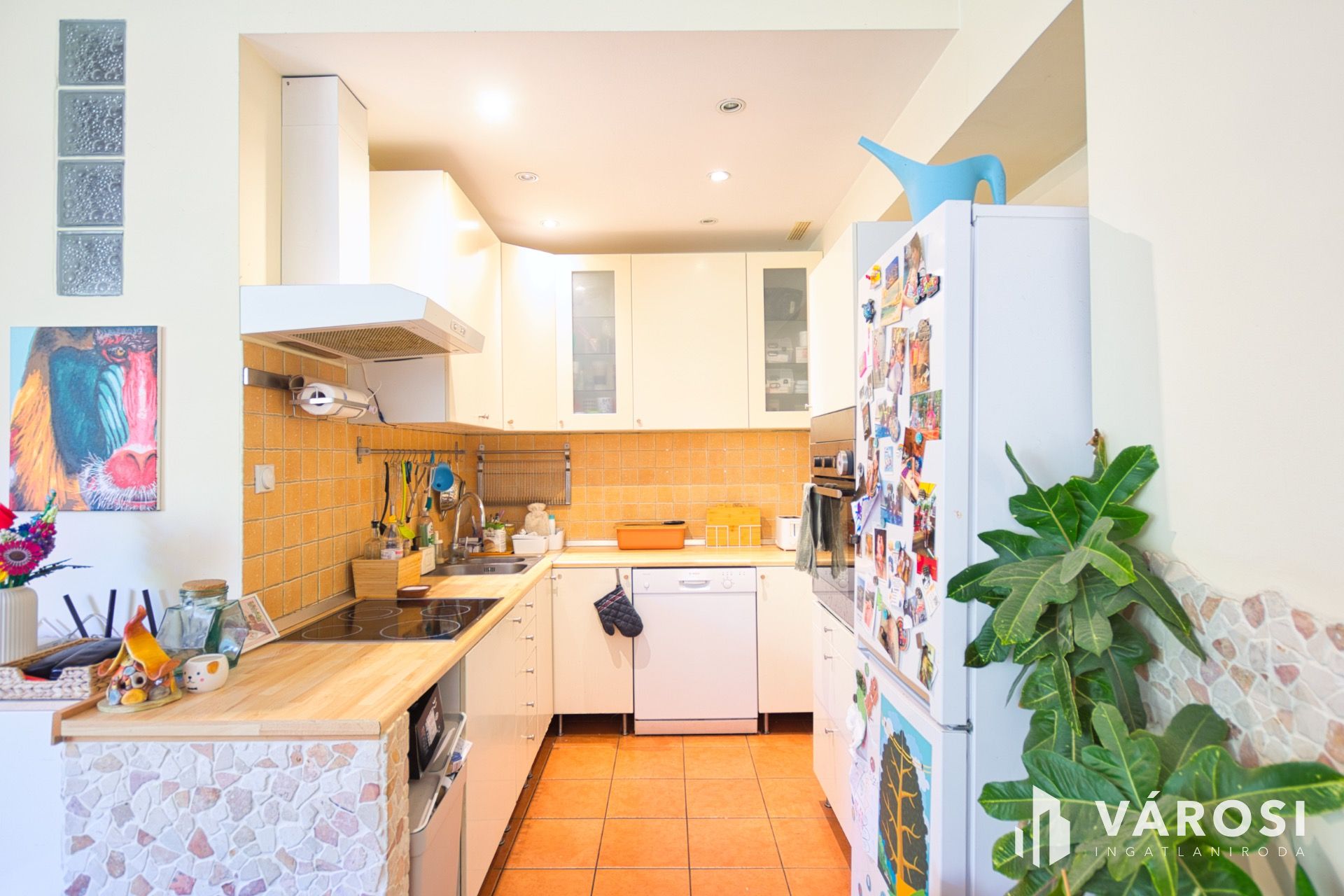 A lakás praktikus elosztású, nappali + 3 külön nyíló hálószobával rendelkezik, így ideális családok számára is. A nappali és a konyha egy légtérben helyezkedik el, és a gondozott, ősfás belső kertre néz, ami ritka nyugalmat biztosít a városi környezetben.
