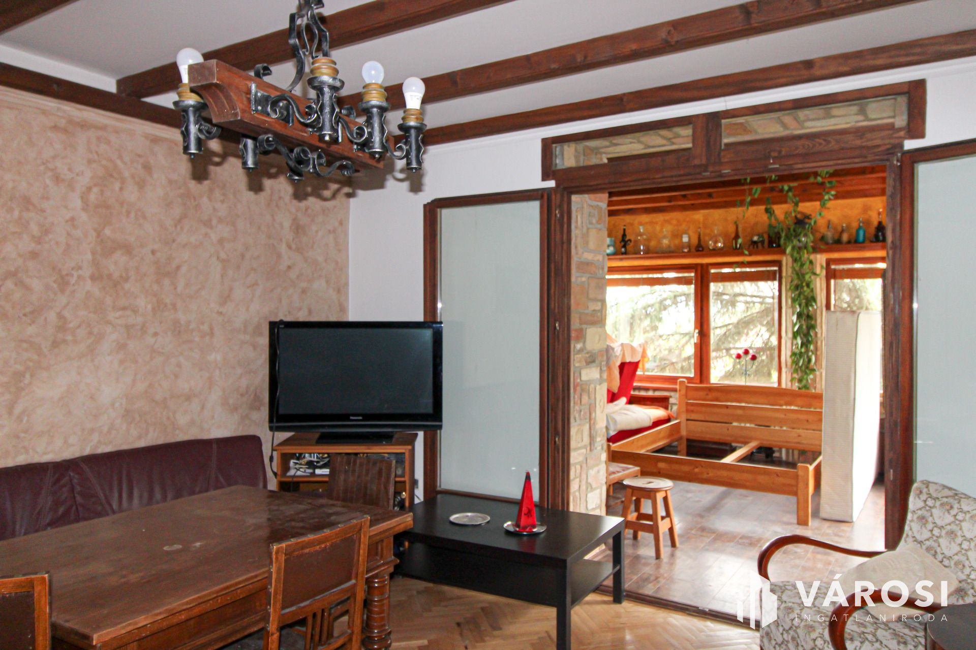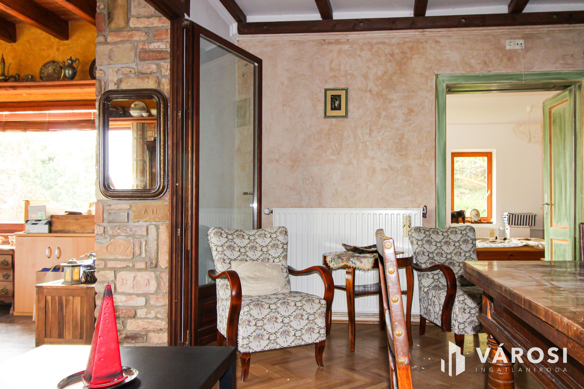 Az igazán egyedi hangulatú kialakítással rendelkező családi otthon, átlagos állapotú, kényelmes terek és kellemes, nyugodt környezet jellemzi. A nagy méretű telken egy gépkocsi tárolására alkalmas zárt garázs , illetve két gépkocsi beállására alkalmas fedett garázs, továbbá egy pince, ásott kút, és egy melléképület helyezkedik.