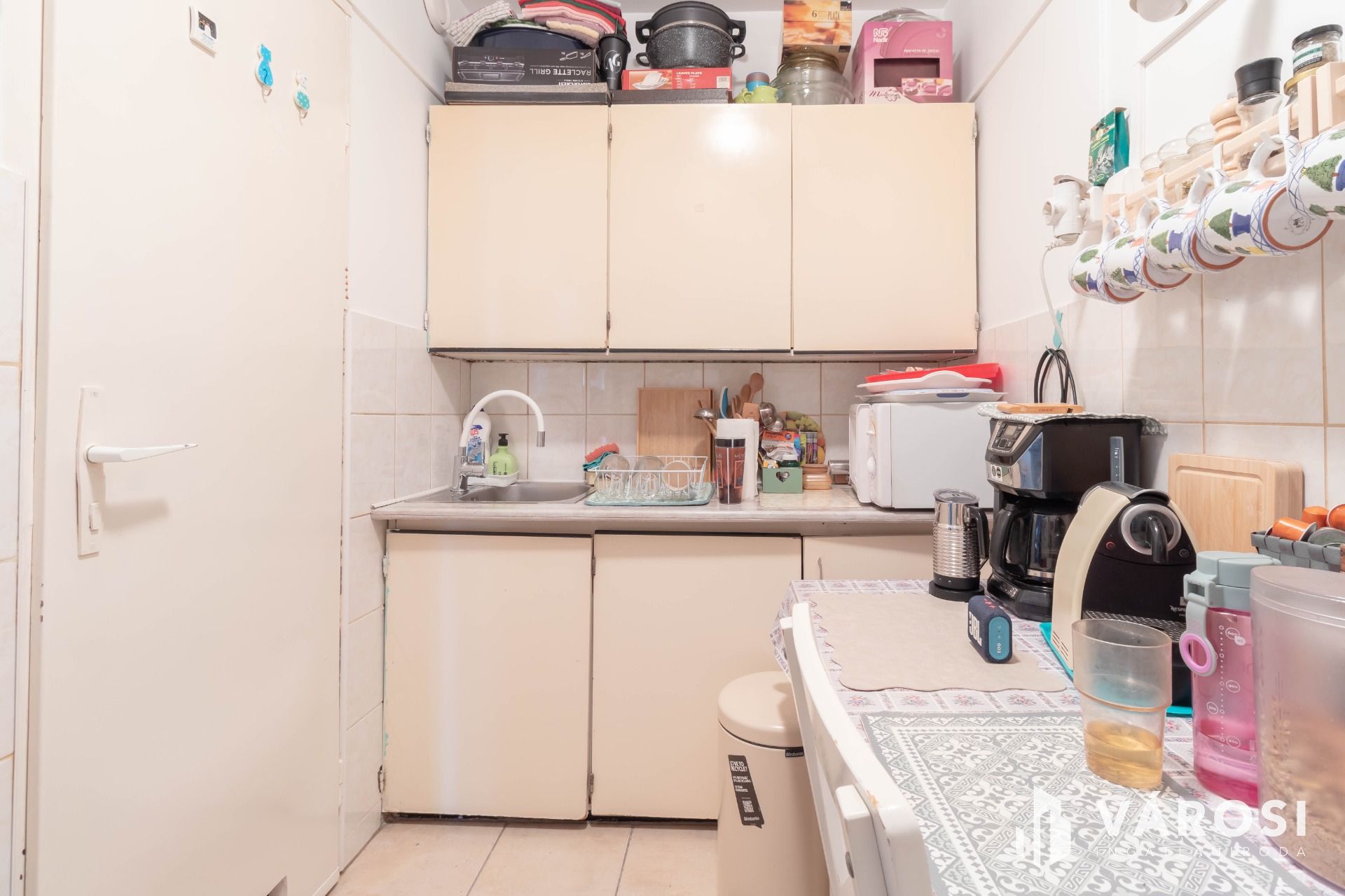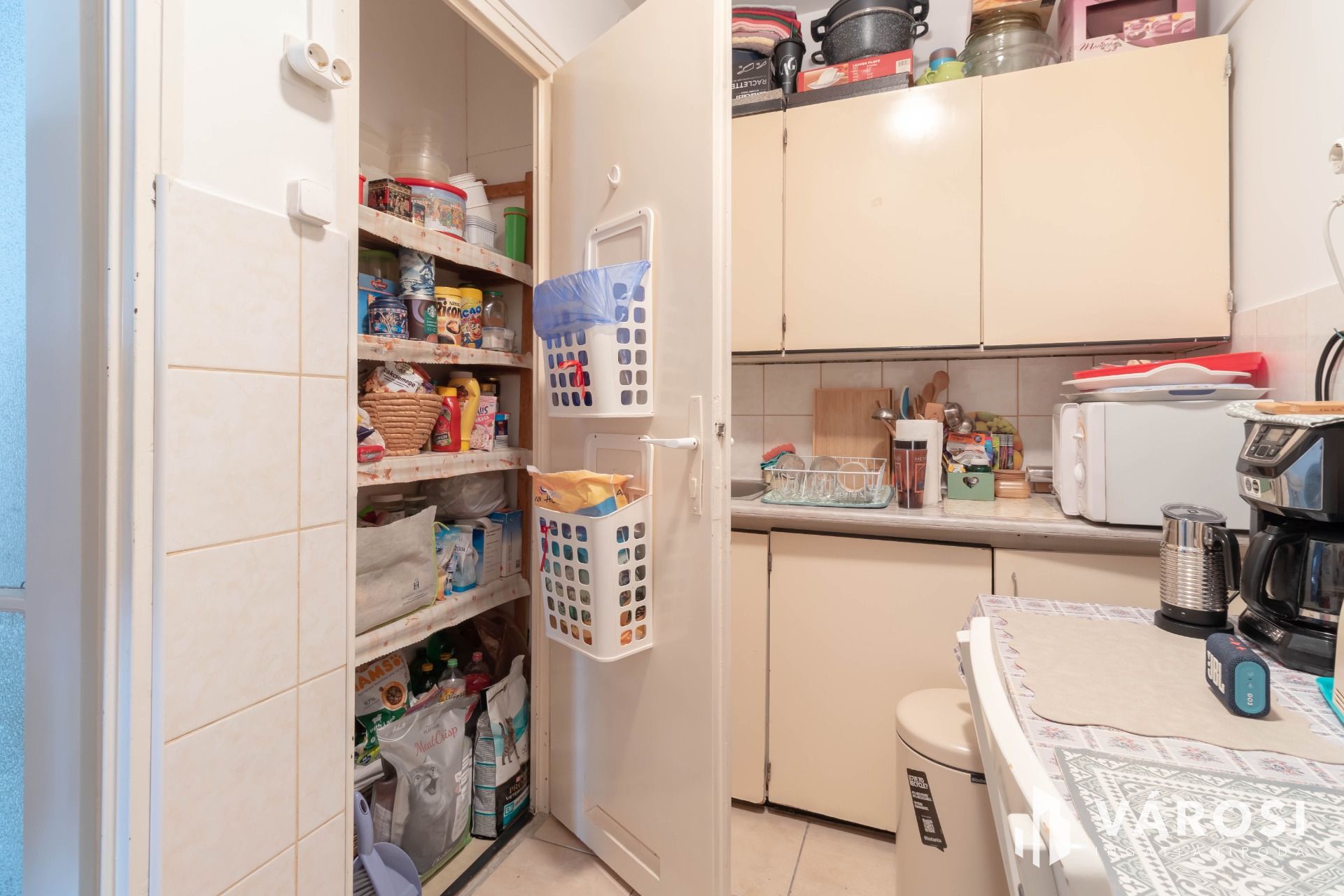 A bejárat melletti gardróbban – ahogy a fotókon látható – mosógéphez, szárítógéphez kialakított vizes csatlakozás érhető el.