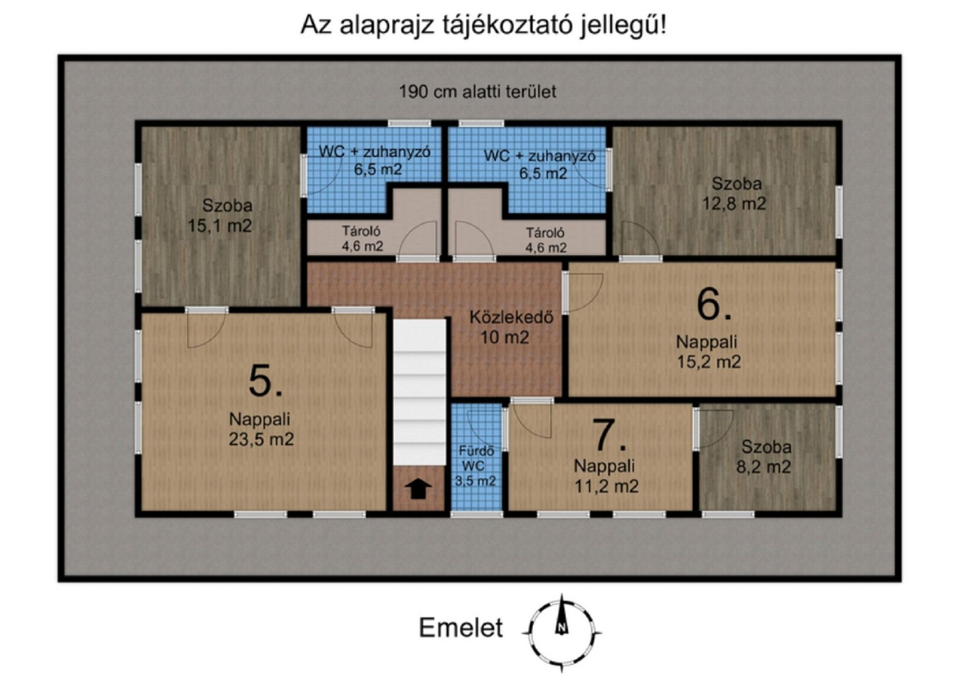 Az épület 4 nappaliból, 7 szobából, és 7 fürdőszobából áll.